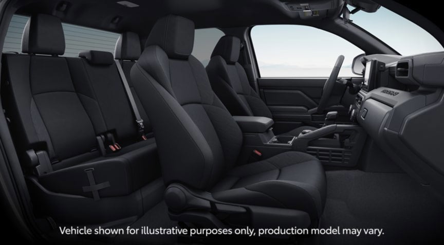 - Fabric-trimmed seats; 6-way manually adjustable driver and front passenger seats with 2-way power-adjustable lumbar support on driver's seat only