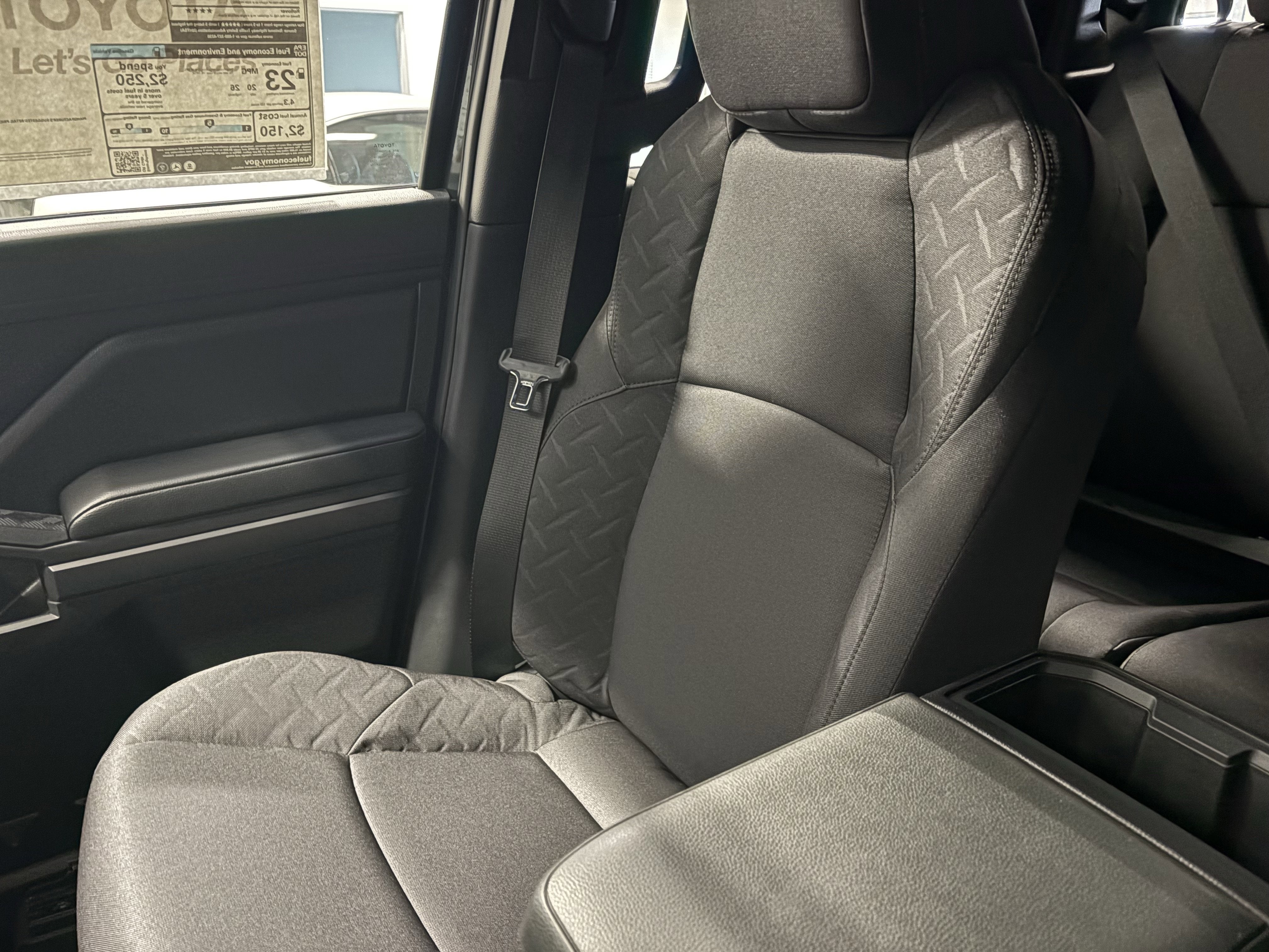 - Fabric-trimmed seats; 6-way manually adjustable driver and front passenger seats with 2-way power-adjustable lumbar support on driver's seat only