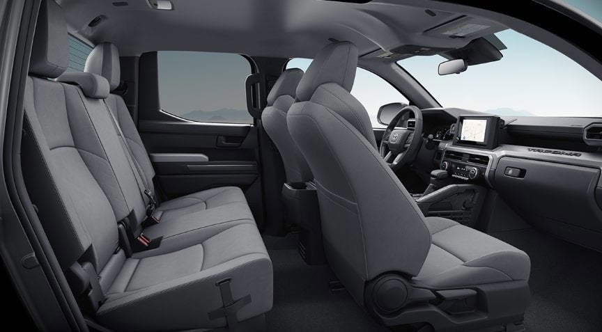 - Fabric-trimmed seats; 6-way manually adjustable driver and front passenger seats with 2-way power-adjustable lumbar support on driver's seat only