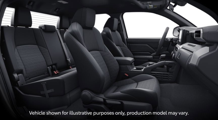 - Fabric-trimmed seats; 6-way manually adjustable driver and front passenger seats with 2-way power-adjustable lumbar support on driver's seat only