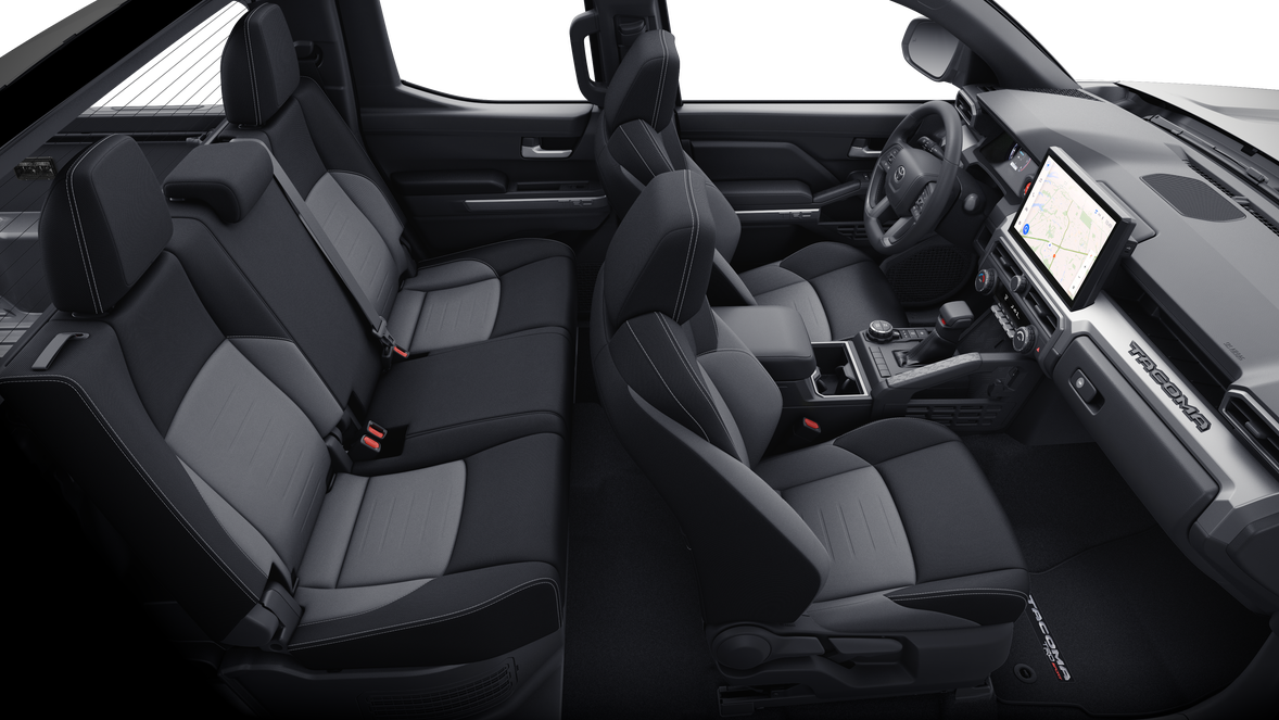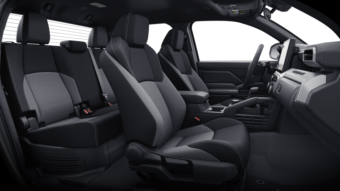 - Fabric-trimmed seats; 6-way manually adjustable driver and front passenger seats with 2-way power-adjustable lumbar support on driver's seat only