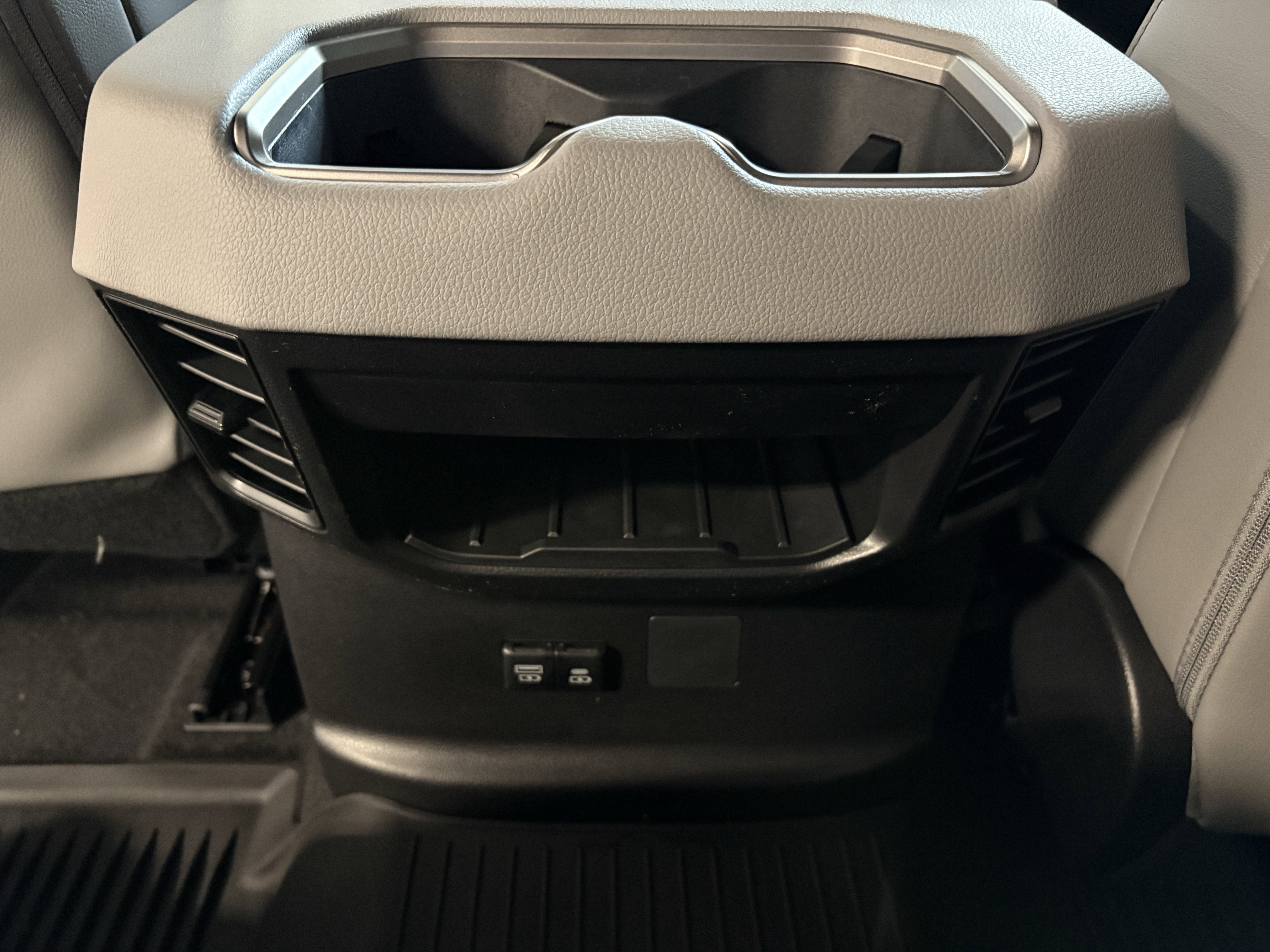 - Illuminated center console storage bin and glove box