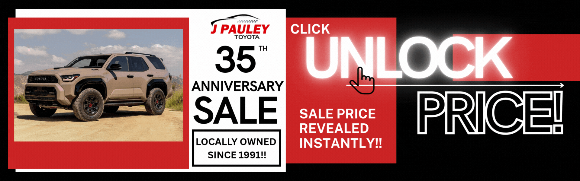 Thank you, River-Valley for 35 Wonderful Years!! To celebrate, we are having our 35th Anniversary Sale - on now - at J Pauley Toyota! Click [UNLOCK] - And our 35th Anniversary Pricing will be displayed instantly on site!