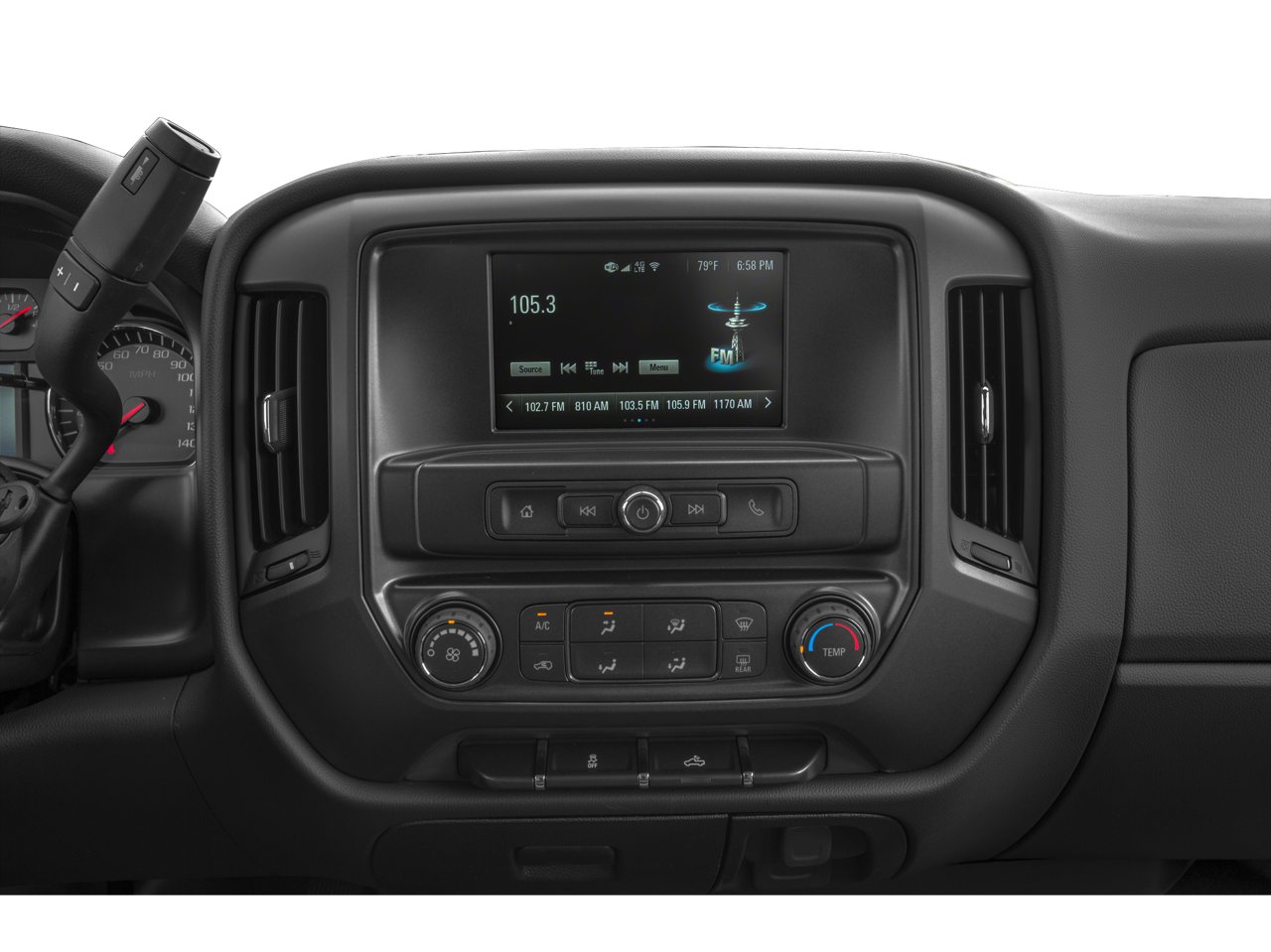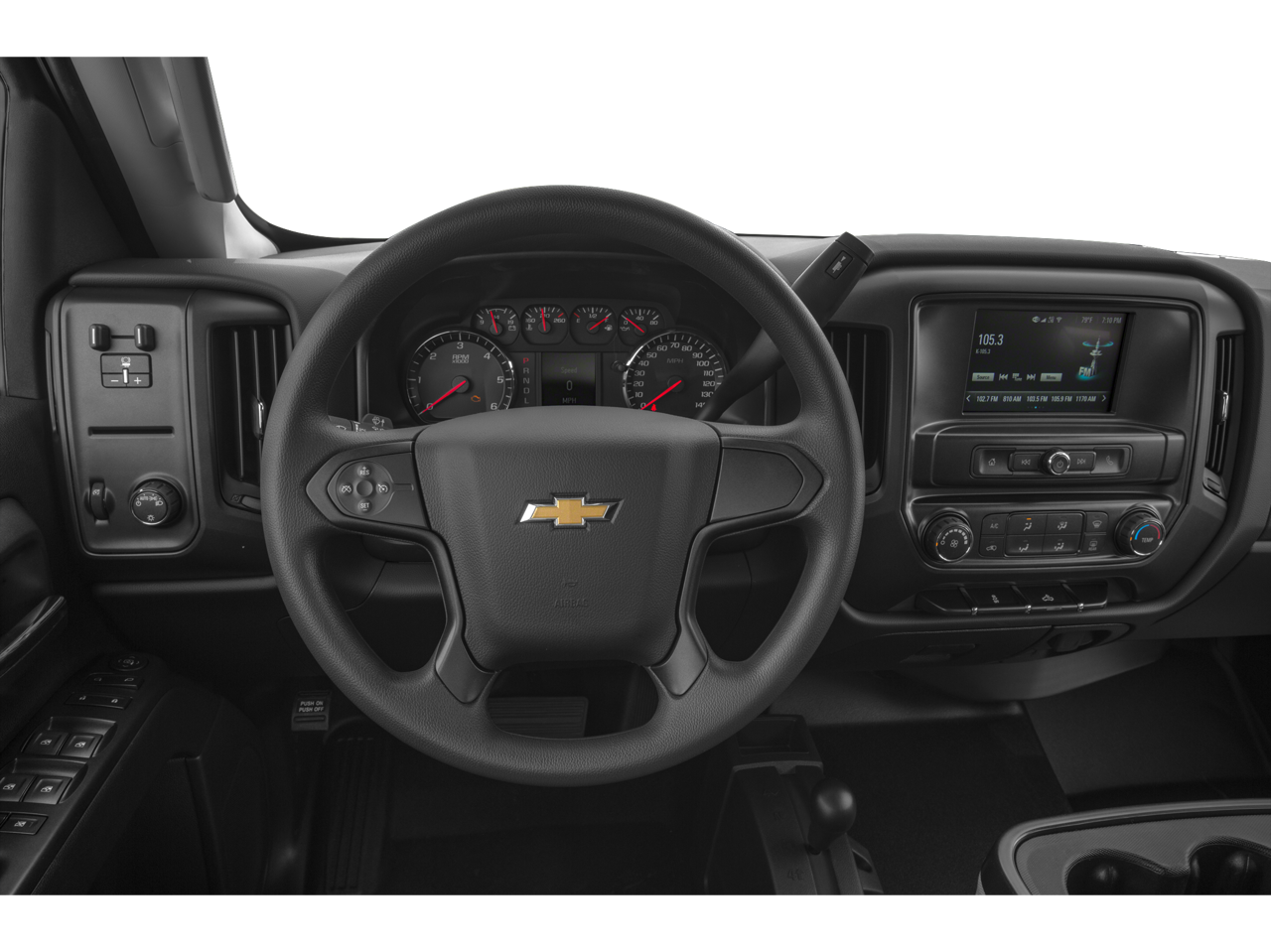 - Audio system, Chevrolet Infotainment System with Navigation and 8" diagonal color touch-screen, AM/FM stereo with seek-and-scan and digital clock, includes Bluetooth® streaming audio for music and select phones; USB ports; auxiliary jack; voice-activated technology for radio and phone; and Shop with the ability to browse, select and install apps to your vehicle. Apps include Pandora, iHeartRadio, The Weather Channel and more.