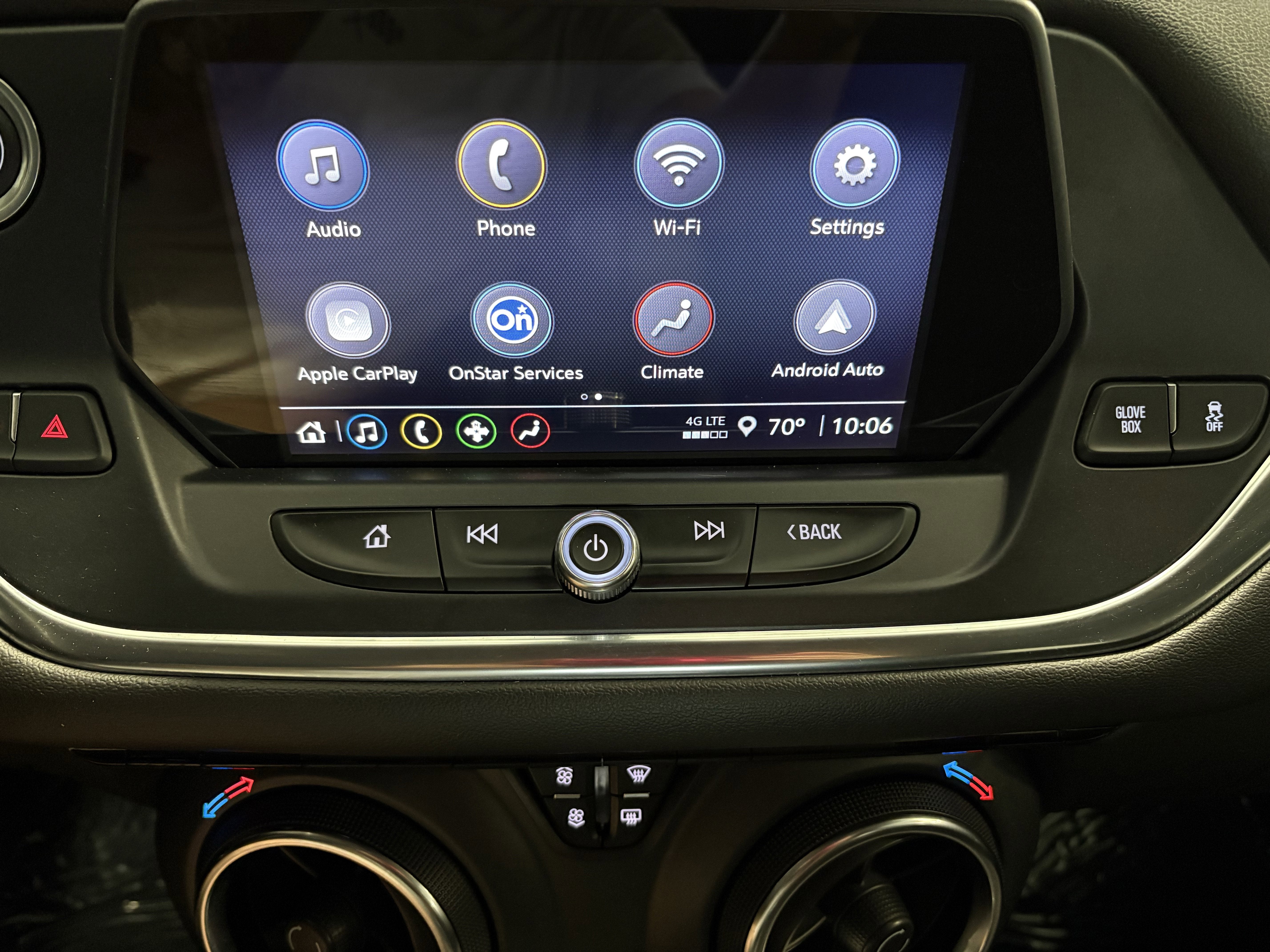 - Audio system, Chevrolet Infotainment 3 system 8" diagonal color touchscreen, AM/FM stereo. Additional features for compatible phones include: Bluetooth® audio streaming for 2 active devices, voice command pass-through to phone, Apple CarPlay and Android Auto capable.