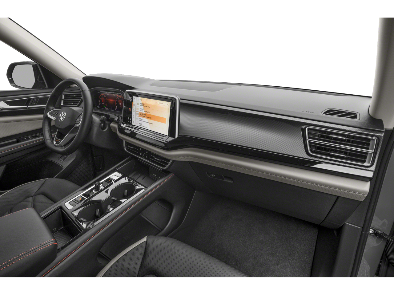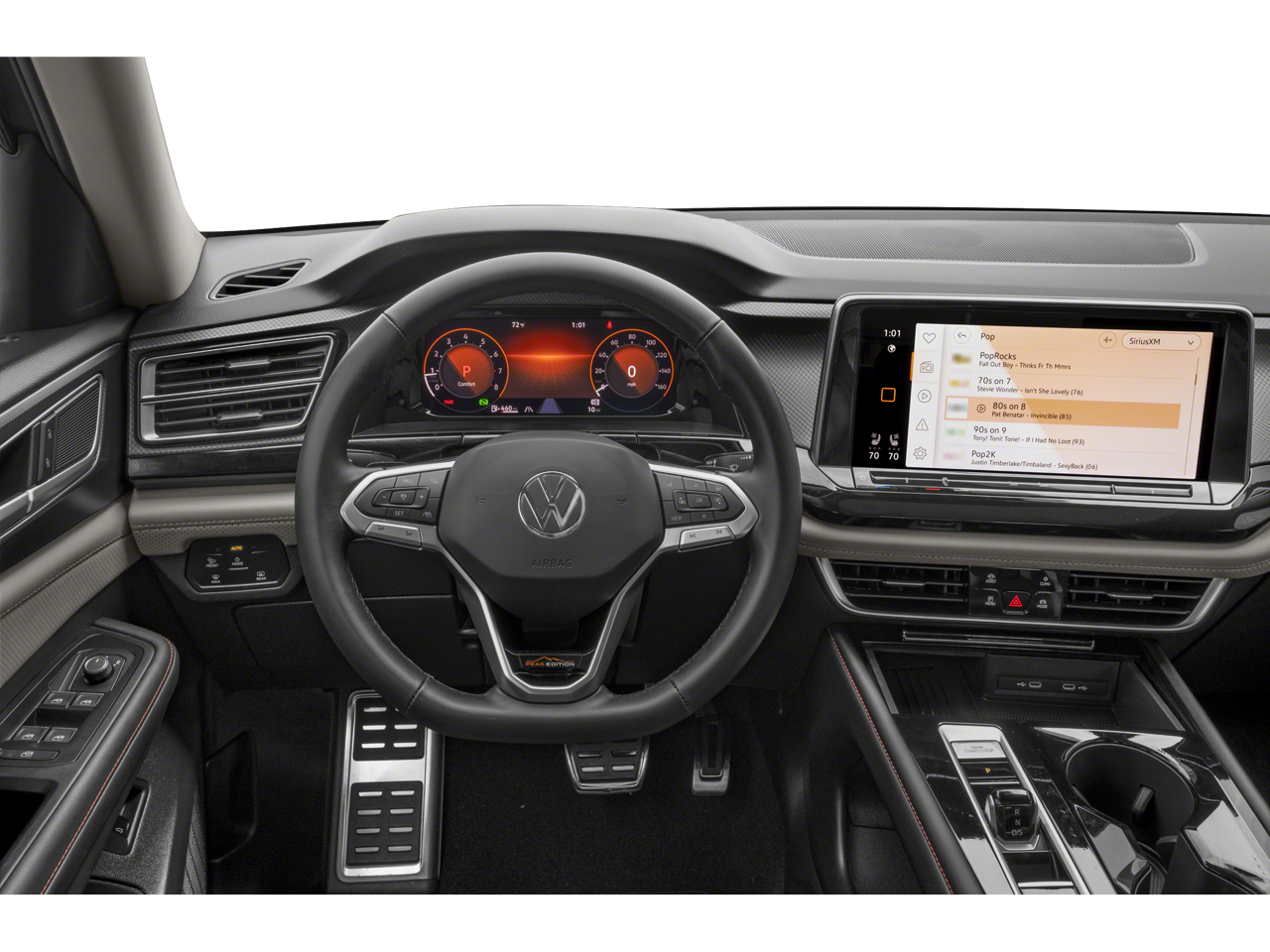- Radio: MIB3 Composition Media -inc: 12" touchscreen multi-function center display, AM/FM/HD Radio and WMA/MP3/FLAC player w/USB-C input, voice control, SiriusXM w/360L (w/3-month free trial subscription; 360L services require acceptance of Car-Net terms), 6-speaker sound system, Bluetooth® connectivity (for compatible devices), capability for in-vehicle 4G LTE enabled Wi-Fi (cellular data plan required; includes limited trial), capability for VW Car-Net services (capabilities for services vary; requires enrollment or subscription), App-Connect smartphone integration (w/Apple CarPlay, Android Auto and MirrorLink) via USB, wireless App-Connect smartphone integration (for compatible devices) w/multi-phone pairing capability and Qi wireless inductive charger (for compatible mobile phones and accessories) in front row All VW Car-Net services subject to terms and limitations. Some services, which include emergency assistance services, require a paid subscription. See dealer or vw.com/carnet for details.